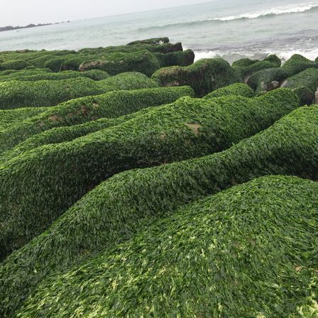 写真では一面緑に見えますが、実際はそれほど範囲が広くありません。 ここだけを目当てに行くのではなく、野柳などと組み合わせて行くことをおすすめします。