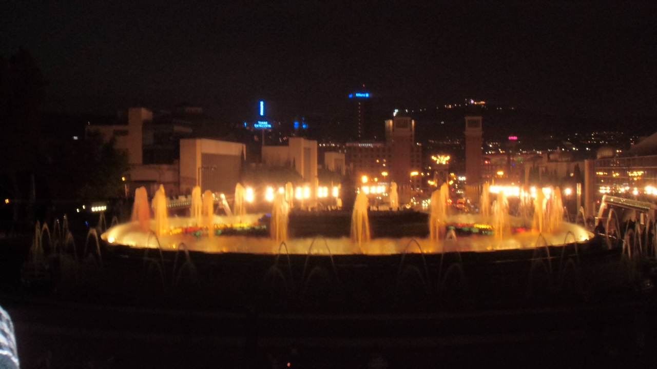 私はカタルーニャ美術館の閉館後にこちらの噴水を訪れました。暗くなっていましたし、8時ごろだったでしょうか?きれいにライトアップされとってもきれいな噴水でした。ほかの観光客も高台の美術館も写真を撮られていました。