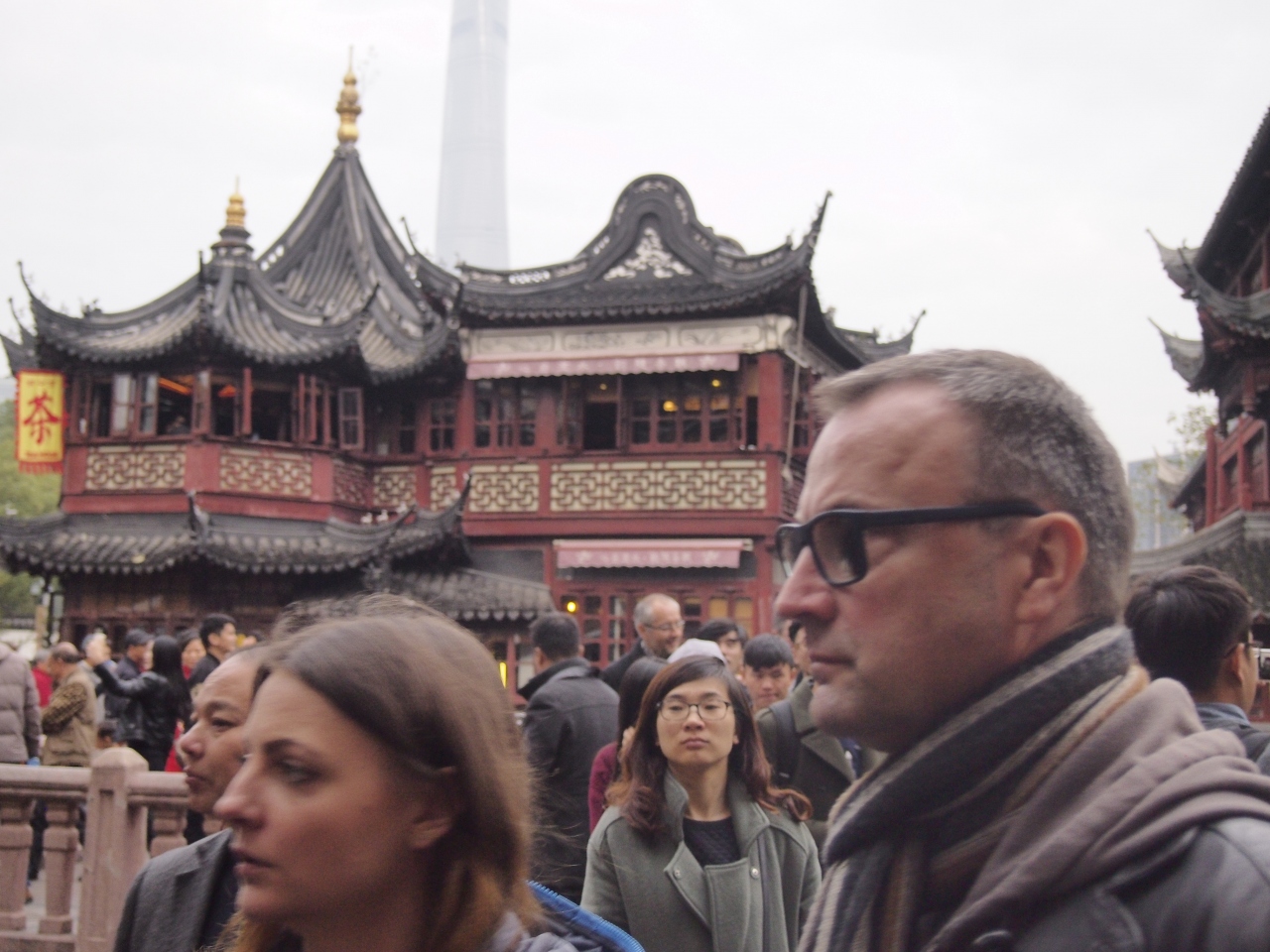 中に入っていく土産物街もこじゃれています。庭園には鯉がいたり古い建物が見えたり、と日本の歴史的観光地と似ているものの、外資系のお店が入っていたり、上海タワーが遠くに見えたりと中国っぽさも感じられます。