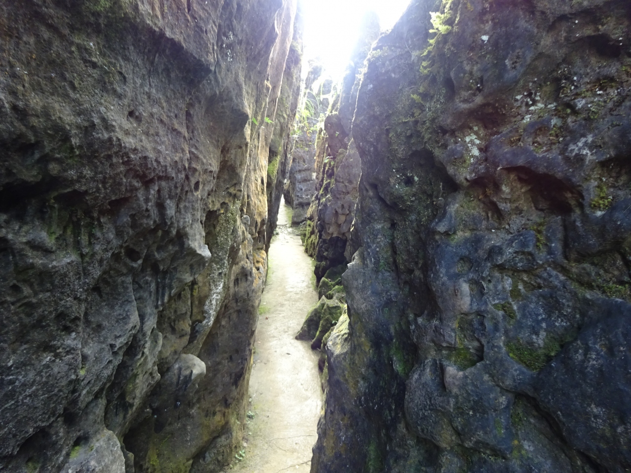 表示がある処から急なかいだんと狭い岩に囲まれた道を頂上迄約30分行くと