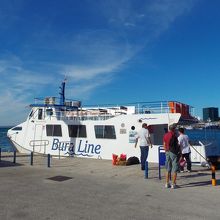 バスだと30~40分くらい。船だと1時間くらいですが、青い海と、海から見る街並みはサイコーで気持ちよかったです。