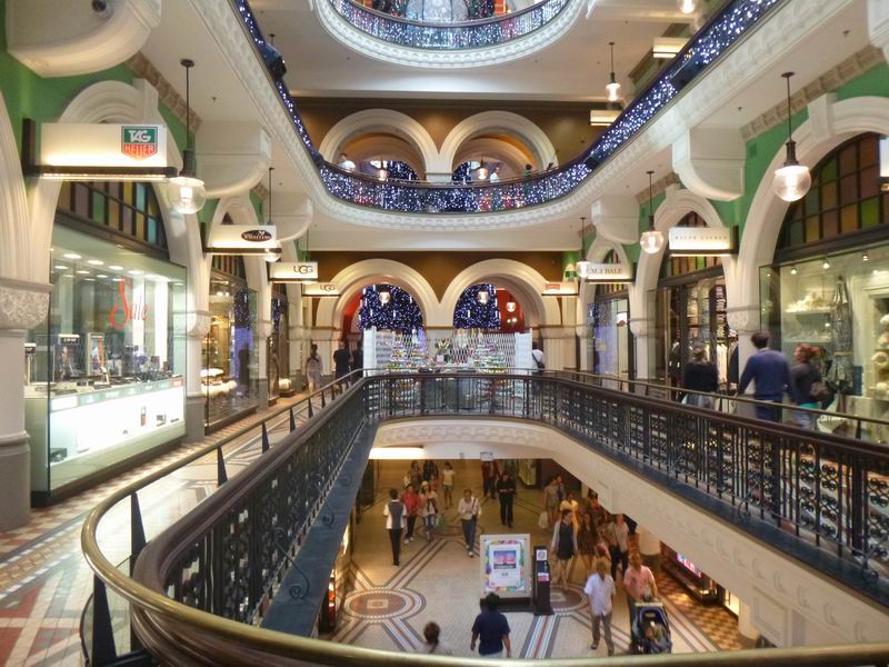 タウンホールの北、ジョージ通りとヨーク通りに挟まれた南北に長いショッピングモール。1898年に建てられた歴史的建造物です。中央部分にドームがあるのが特徴で、外壁、柱、床、手すりに至るまで重厚で豪華な造りとなっています。ブランド店、雑貨店、カフェなど様々な店が入っており、特に買い物をせずとも楽しめるので、近くを通る際は中に入ってみてください。