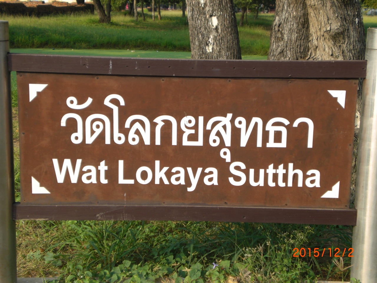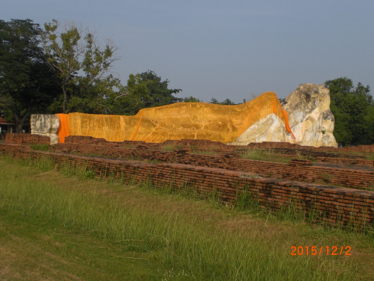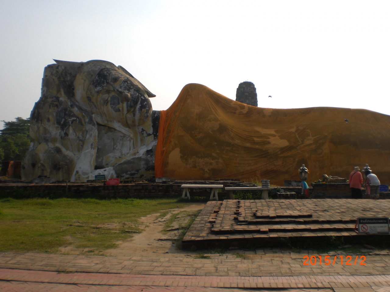 アユタヤの史蹟群の中では、珍しく、わずかに仏搭が1基のみで、広い原っぱに大きな釈迦像があるだけです。