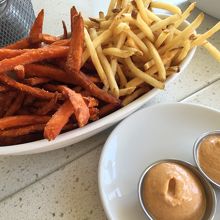 普通のフレンチフライとハーフで頼めますが、スイートポテトフライはほんとに美味しかったです。