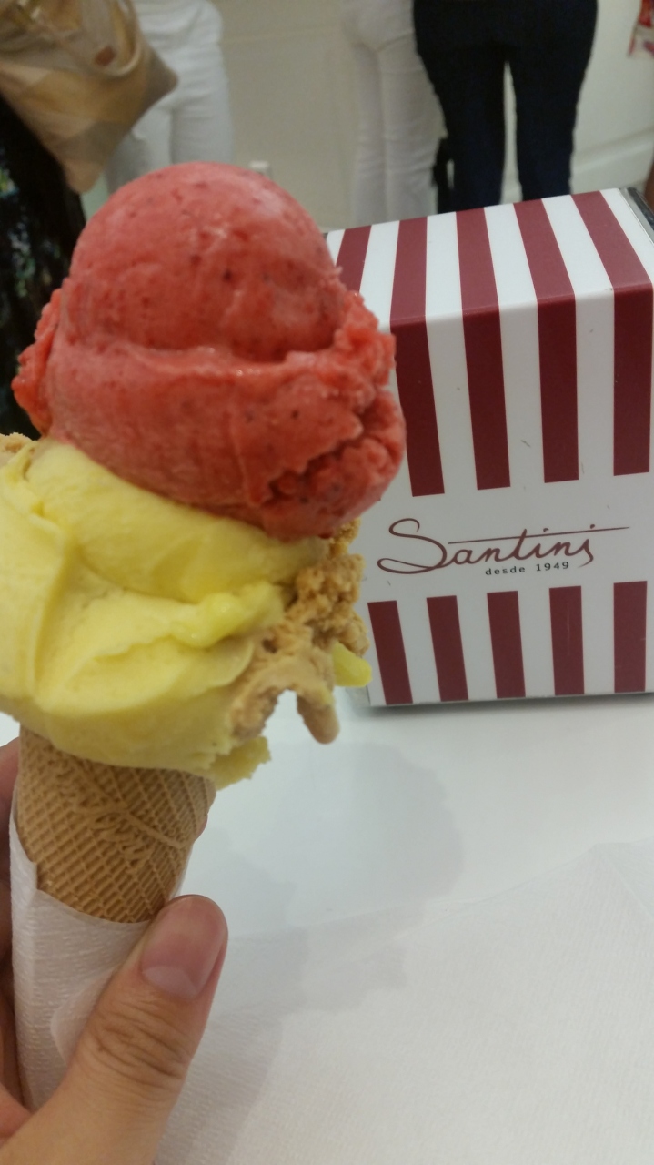 たまたま通りかかったのですが、混んでいて人気店みたいなので入ってみました。先に何スクープにするかレジで言ってお金を払います。そしたらチケットを持って、アイスの方で渡し後は好きな味を選ぶだけです。私は2スクープで3つの味を選べるのにしました。でも2つしか味を決められなくて、これにもうひとつ足すならどれ?と聞くとこちらの好みを聞いて選んでくれました。フルーツ系は果肉も入っていてほんとにおいしいです!