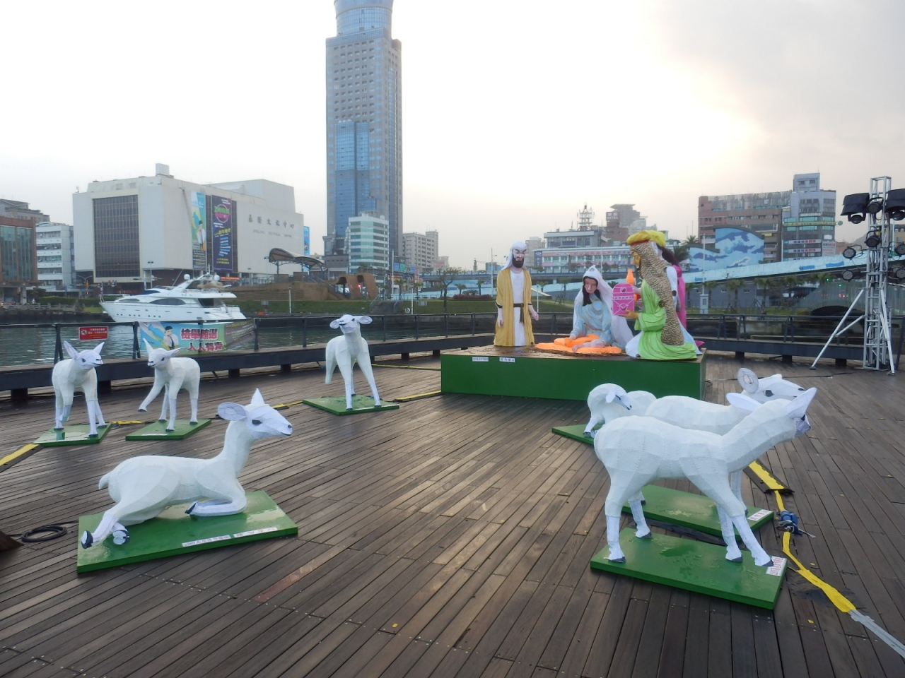基隆駅を出てまっすぐ進むと、すぐに海に出ます。海沿いに設けられているのがこちらの海洋広場です。その名の通り、単なる広場ですが、イベントが開催されていることもあるようです。私が訪れた時は12月だったので、イルミネーションの飾り付けがされていました。中華テイストが加わった、日本とは違うクリスマスのオブジェが見られて面白かったです。