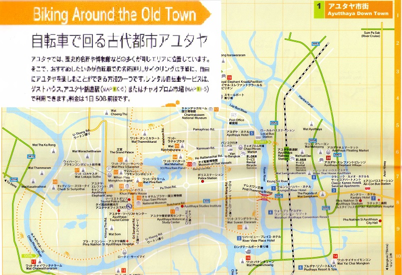 アユタヤの地形は、平坦で舗装もしっかりしていますので、レンタル自転車で廻ることは容易です。