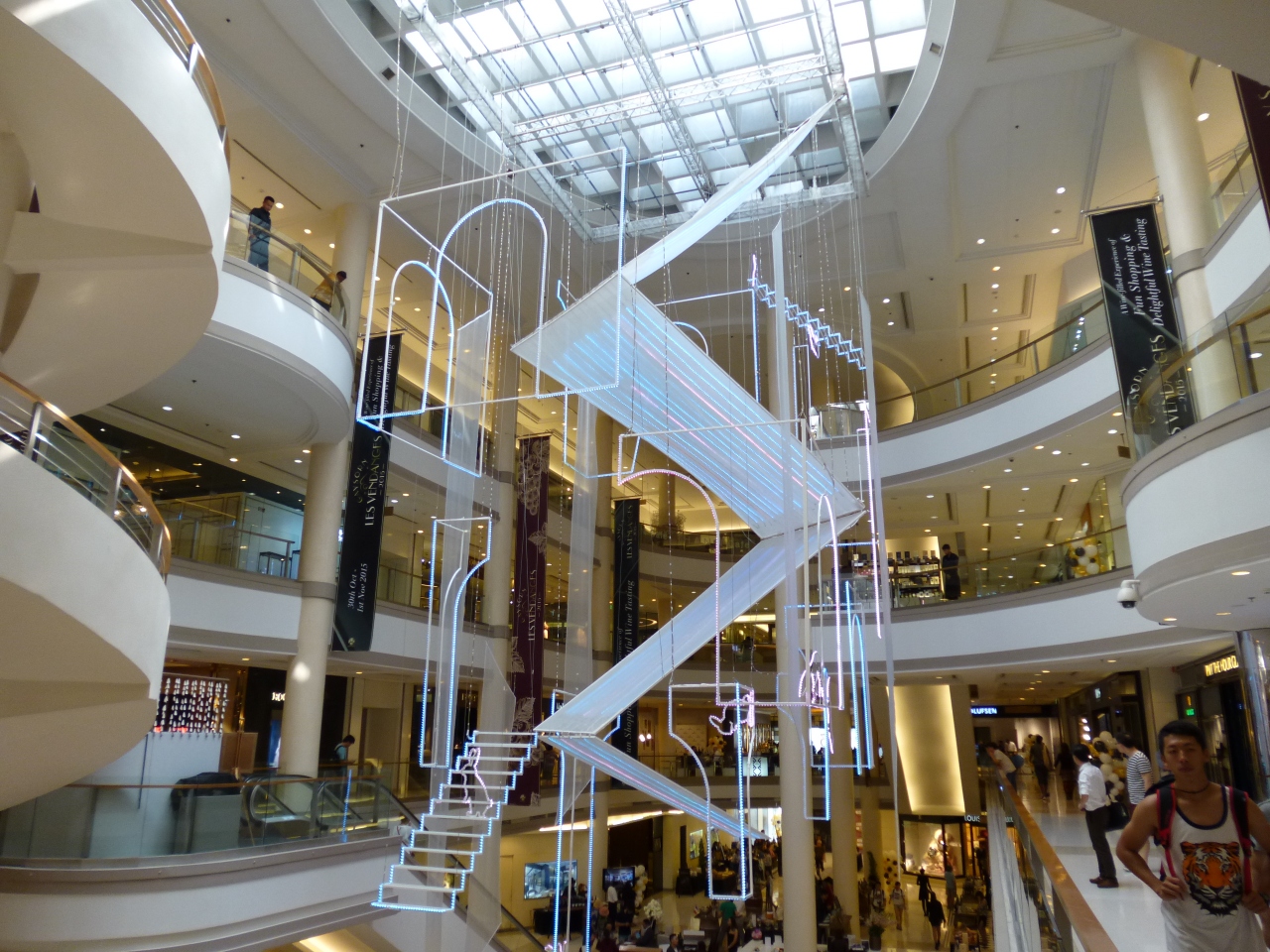 内部は中央部が巨大な吹き抜け空間になっており、お洒落なオブジェなどが飾られていました。世界に名だたるブランドショップも多く、バンコクのセレブ御用達の商業施設という印象です。