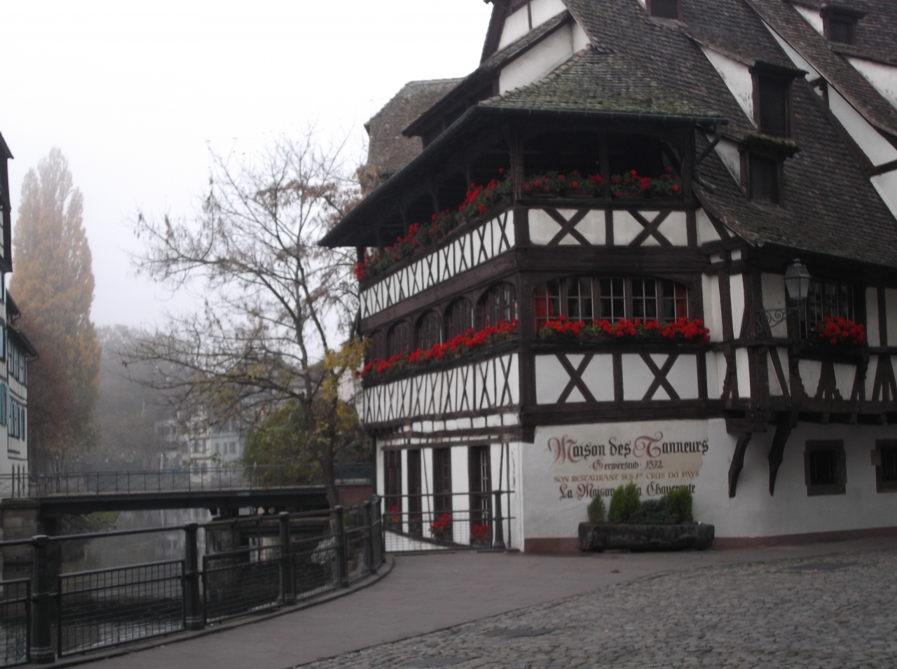 アルザスは、ドイツとの国境に近い地域です。 この木組みの家は「コロンバージュ」と言うそうで、いかにもドイツらしい雰囲気です。
