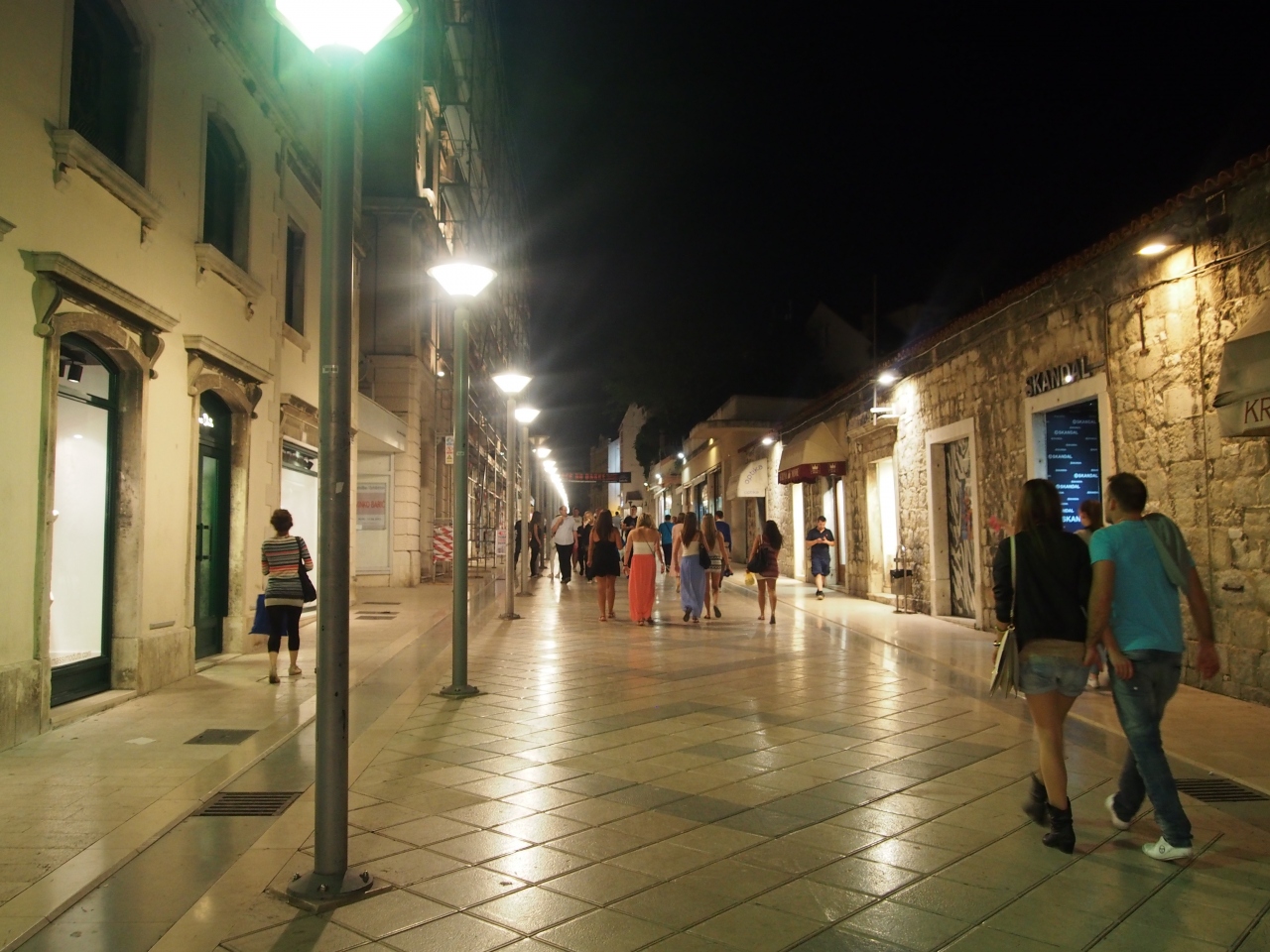 旧市街のディオクレティアヌス宮殿の東の銀の門と、西の鉄の門を結ぶ中心通りです。道の両脇にはレストラン・カフェ・お土産屋さん・ショップなどがたくさん集まっています。また石畳の歴史を感じさせる通りです。夜も雰囲気がよいです。