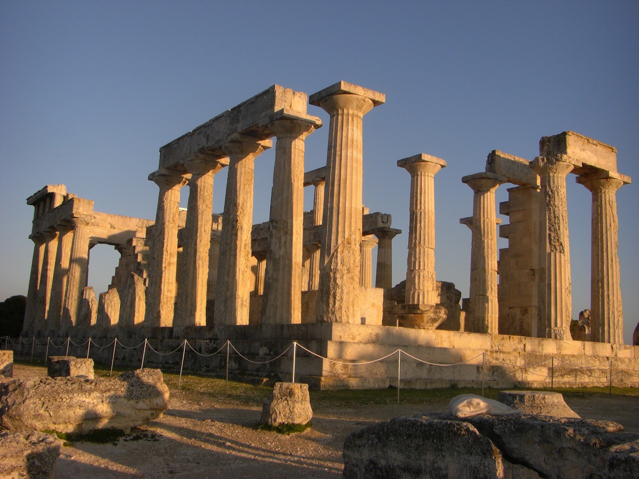 ★エーゲ海クルーズ サロニコス諸島エギナ島「アフェア神殿 (Temple of Aphaia)」サロニコス諸島のクルーズでまわった、3つの島(イドラ島、ポロス島、エギナ島)のなかでは、いちばん大きな島で、アフェア神殿へは、バスで回りました。オリーブ畑を縫うようにして丘にあがり、夕日のなかの神殿をみたときは本当に感動です。夕方がお勧めです!