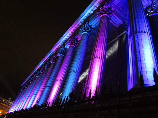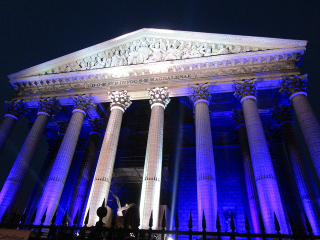 1時間ほどで、コンサートが終わり、外に出ると、昨年と同じように、マドレーヌ寺院の七色?のグラデーションネオン。