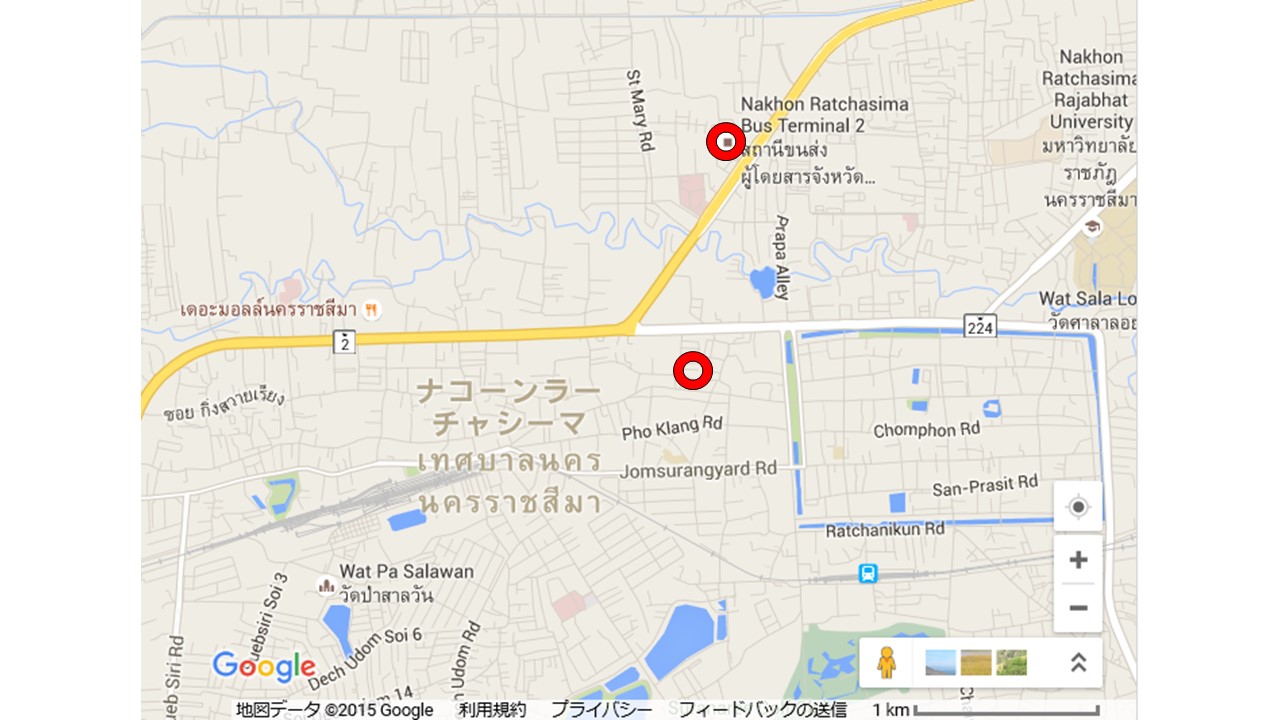 ナコンラチャシマ 第2バスターミナルは、タイ国鉄のナコンラチャシマ駅の北側約2kmにあります。ナコンラチャシマには、第1と第2の2ケ所のバスターミナルがあります。