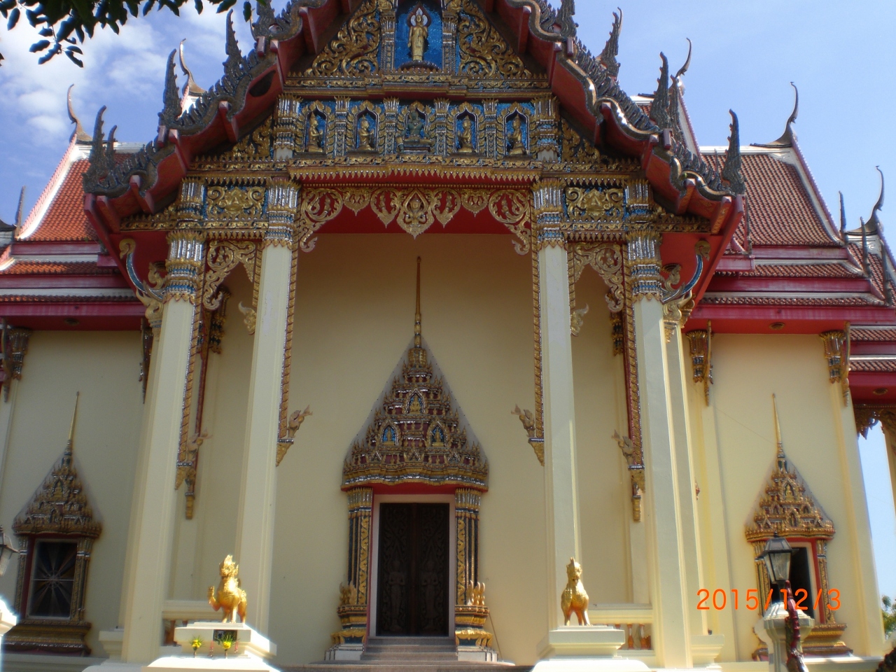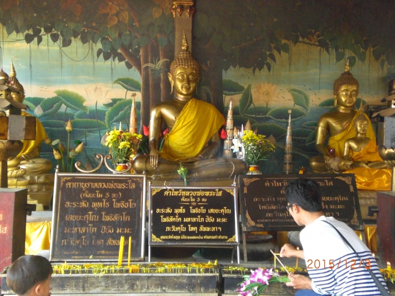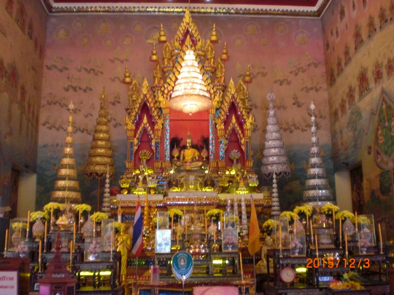 ワット・ポーチャイの外観は、一般的なタイの寺院のようですが、一旦、内部に入ると華麗な造りで圧倒されます。
