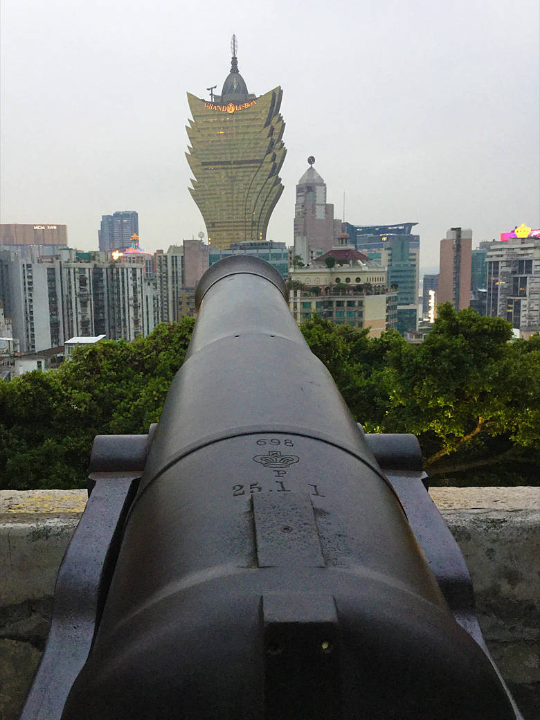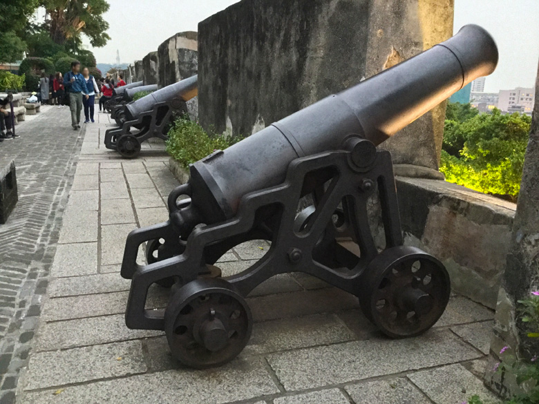 到着すると大砲が並んでおり、そこから街を見渡せますが、やはりここでは大砲の先をあの奇抜なリズボアの建物へ向けてるように見える位置まで移動して記念撮影するのがよいでしょう。