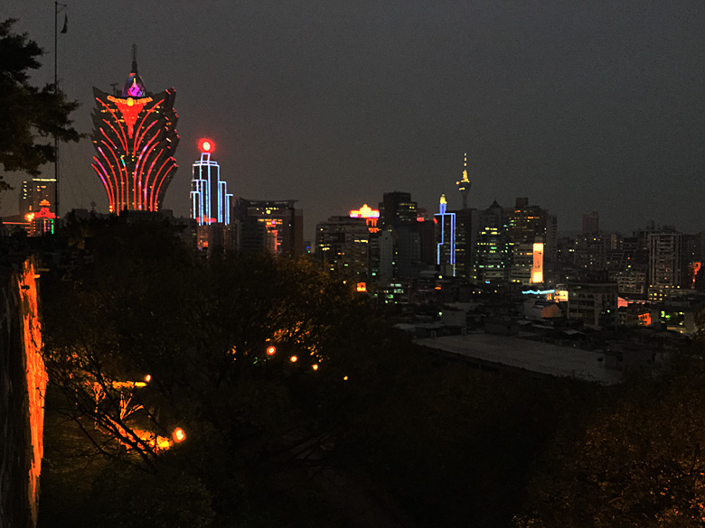夕方から夜にかけて行ったので、夜景も楽しめました。帰りも再び行きに来た道を戻って聖ポール天主堂跡へと抜けましたが、途中、灯りがない急な階段があったので、夜は暗くて危険です。できれば、避けた方がよいと感じました。