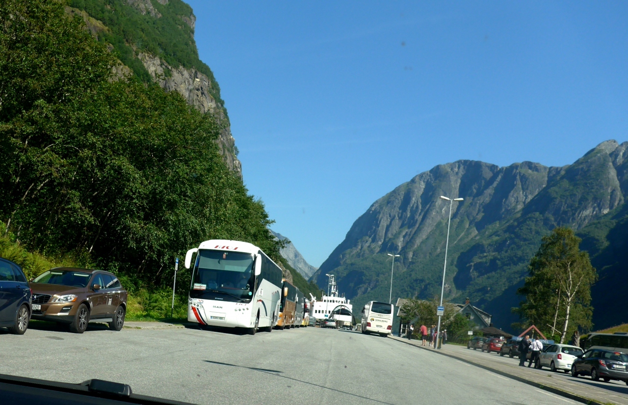 ノルウエーフィヨルドドライブ1700? 41-VinjeからGudvangenへ,Naeroyfjordenを眺めながら昼食,Naeroyの奥地Bakka
