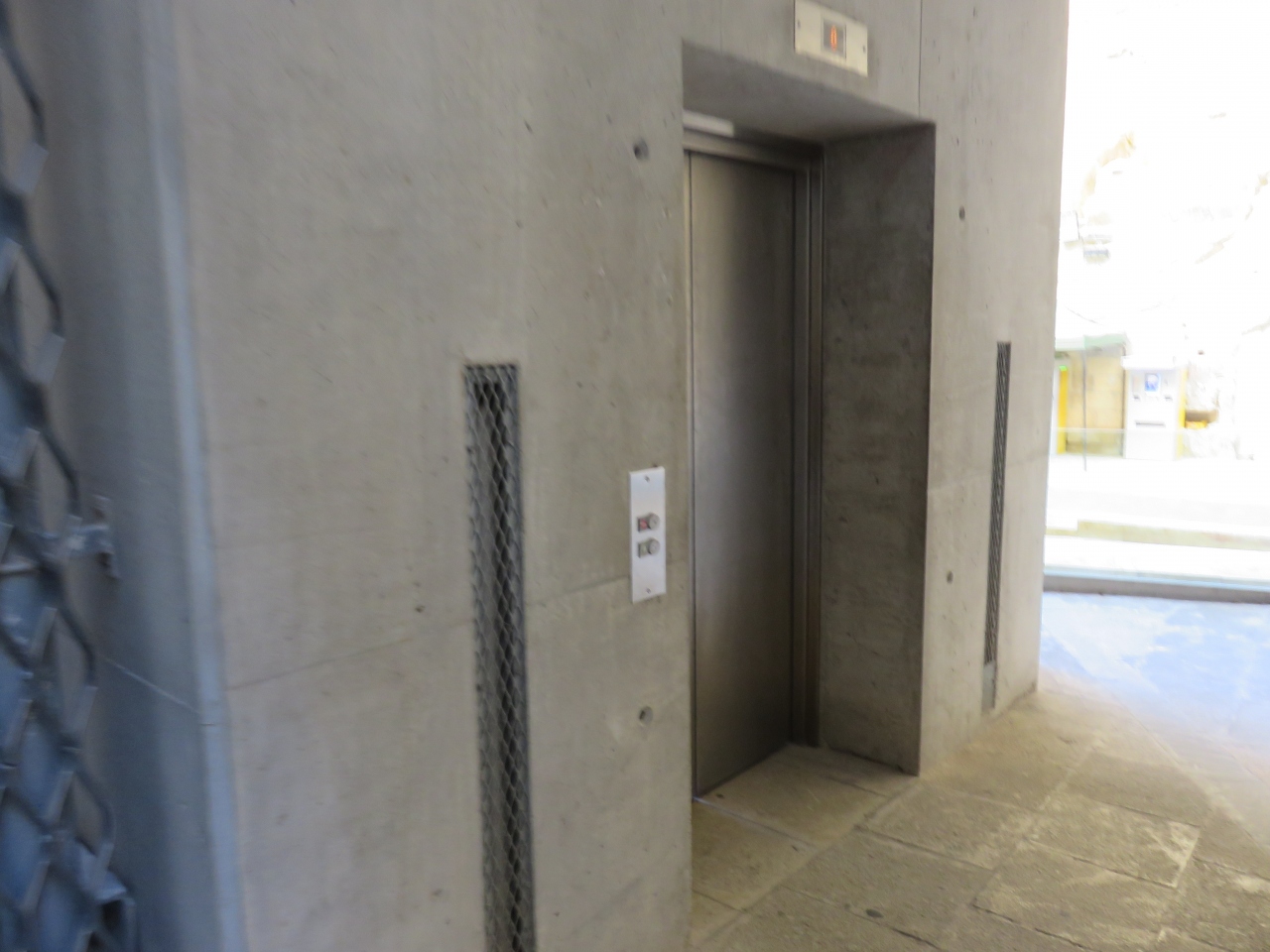 アッパー・バラッカ・ガーデンの南の端にあるエレべータで、地上階へ