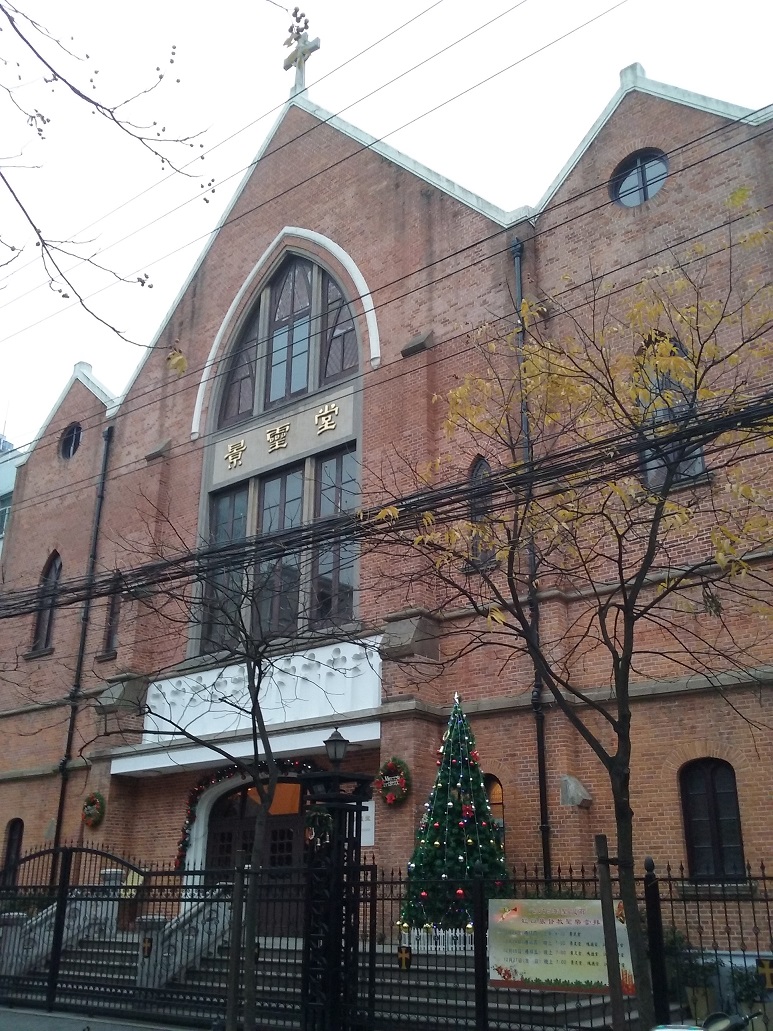 四川北路と呉松路を結ぶ通りで、1920年代に建てられてたキリスト教の教会が123号に「優秀歴史建築」として残っています。景霊堂と名づけられた外壁レンガ造りの美しい建物で、丁度クリスマスツリーが飾られていました。