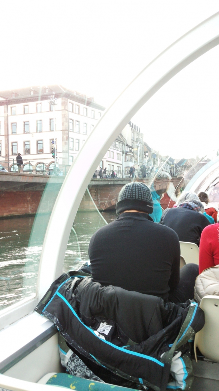 日本語もあります。説明を聞きながらなので外の景色もより楽しめました。途中川の高度差を調節するための仕組みがあったり、橋が動いたりするところがとても楽しかったです。