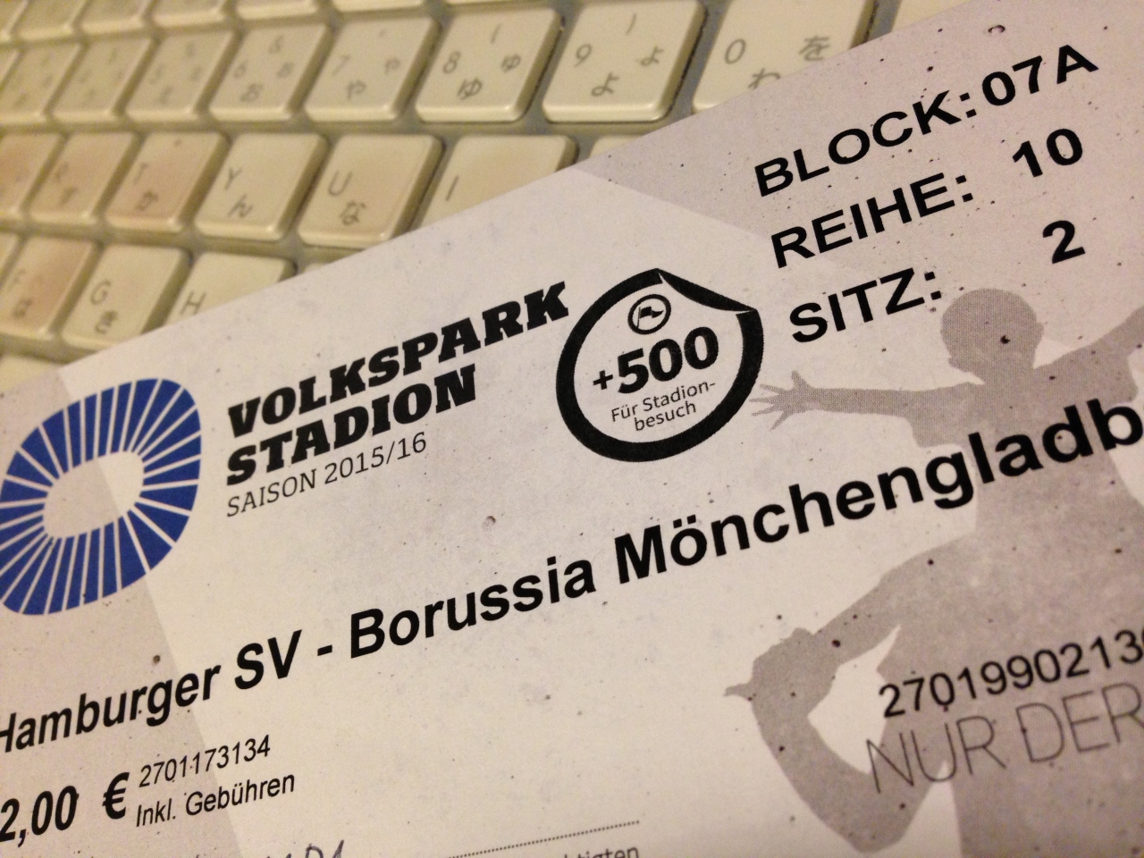 ブンデスリーガ2015/16シーズン、第21節(2/12,13,14日)、ハンブルガーSV対ボルシア・メンヘングラートバッハのチケットを、ハンブルガーSV(以下HSVと略す)公式サイトから購入した。