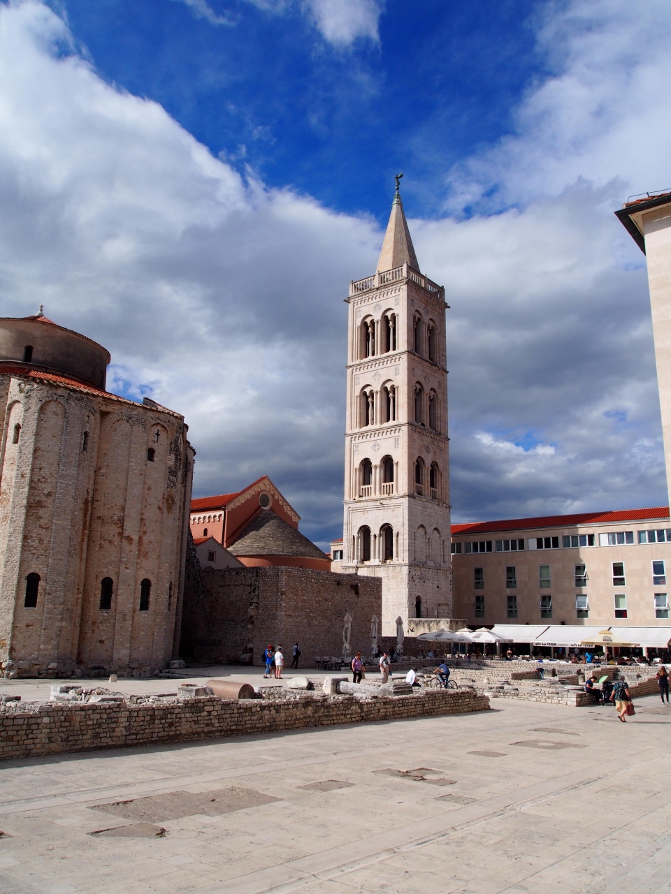 旧市街のフォーラムに聖ドナト教会とともに建っています。聖ドナト教会とその隣に見える聖ストシャ大聖堂の塔はザダルのシンボル的存在で、よく隣合わせに撮影した写真がガイドブックにも載っています。私が行った時は、塔が閉まっていて入れなかったのですが、ここからザダルの街が一望できるそうです。