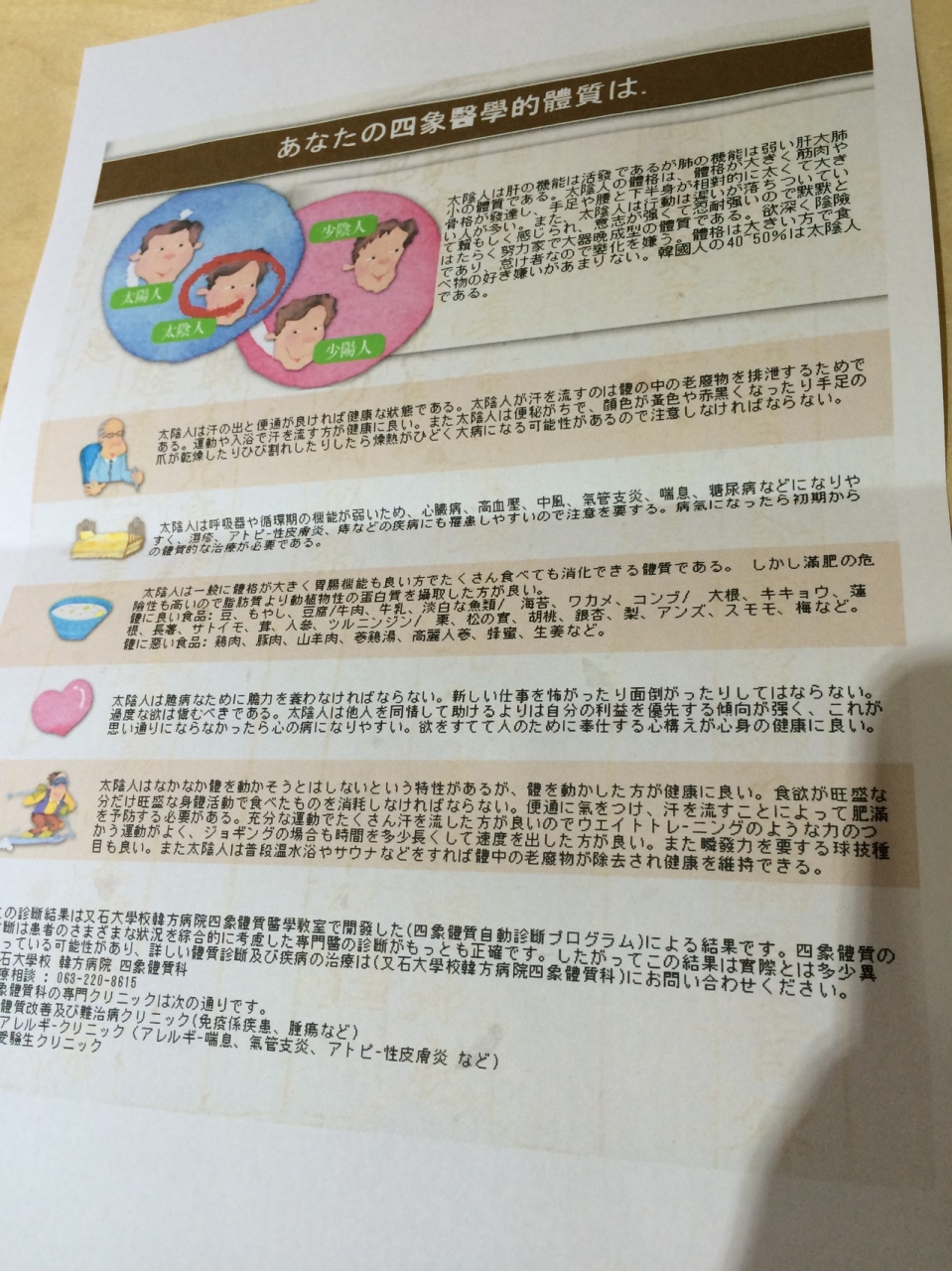 体質診断は自分で質問に答えるのですが、本当に合ってるかな?足湯に入れる薬はすでにパックになっていて、(体質は4種類だけでしたから準備しやすいのでしょうね)若いバイトのような女の子が準備していました。