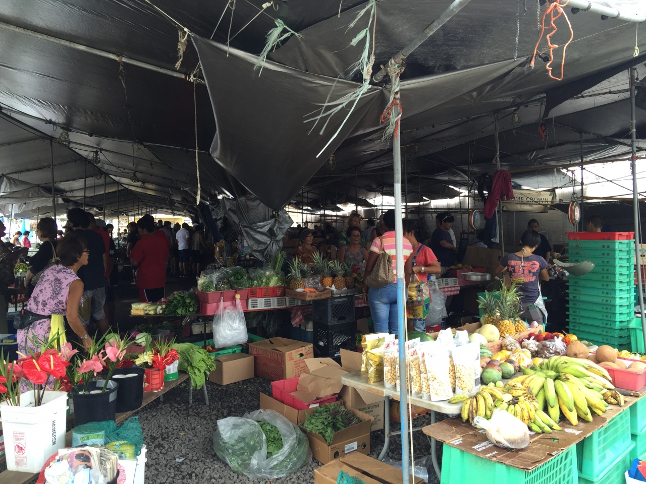シェラトンコナリゾート近くのバス停からヒロまで行った。ファーマーズマーケットに寄る。果物からお弁当、コーヒー、アロハ、何でもある。