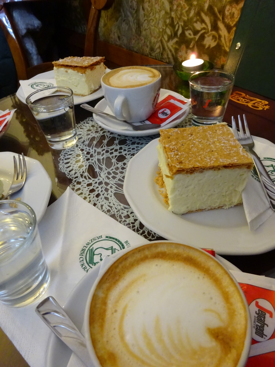 クレメーシュとカプチーノで1150フォリント+サービス税。