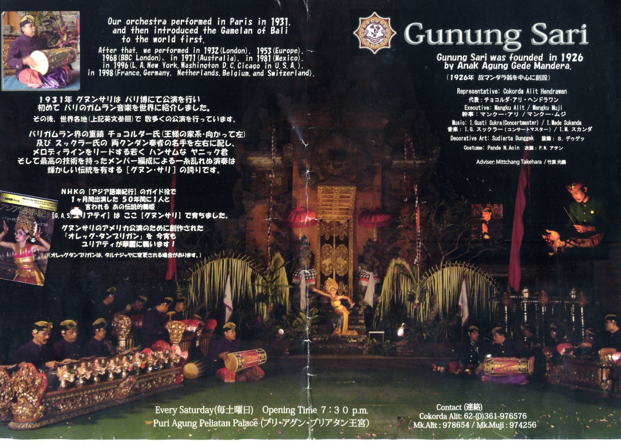 「グヌンサリ」は1926年に創設されたウブドでも歴史ある老舗のガムラングループで日本でもCDが出てるし日本公演も何度も行っています。