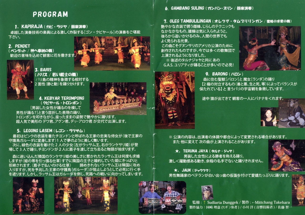踊り手の中にはNHK「アジア語学紀行」にも出演した伝説の舞い姫「ユリアティ」もいて定番の「レゴン・ラッサム」から「バロンダンス」まで素晴らしい踊りを堪能できます。