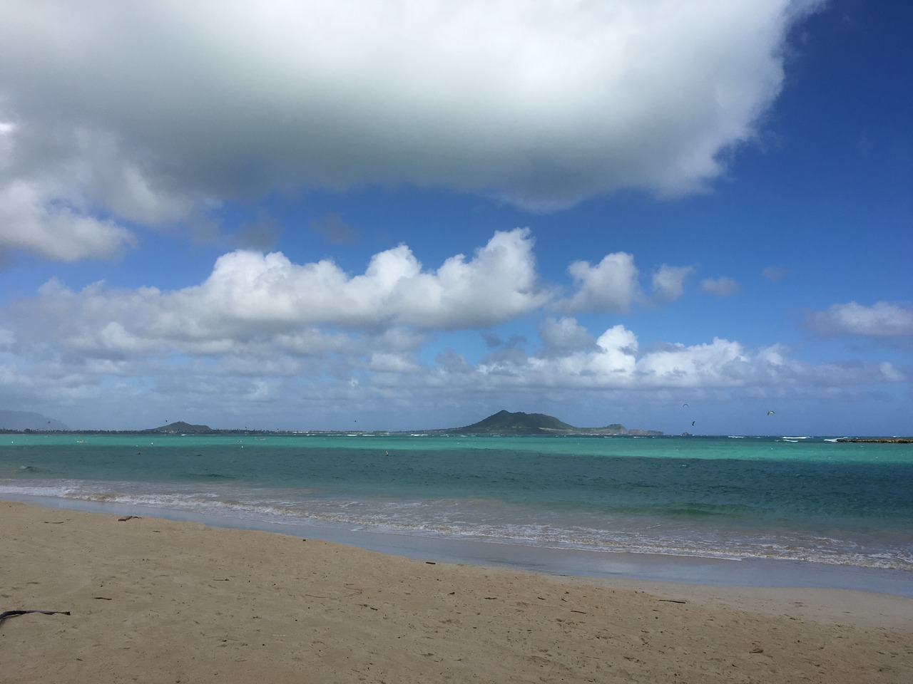 カイトサーフィンが多くみられるのがワイキキとは異なります