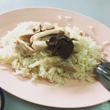 カオマンガイは、40バーツ。鶏のスープで炊き込んだライスが絶品だ。人気店でいつも客で混みあっているが、店のスタッフがフレンドリーなのがイイ。