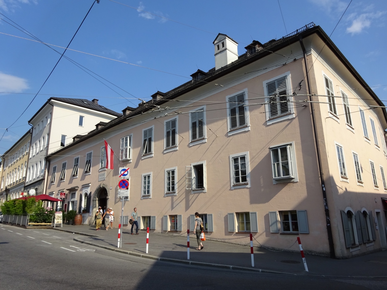 ゲトライデ通りにあるモーツァルトの生家は、ツアー客を始め 多くの観光客で非常に混雑していますが、川の向かい側にある住居の方は比較的静かで、モーツァルトのことを知る上で、より見ごたえがあると思います。