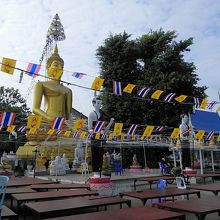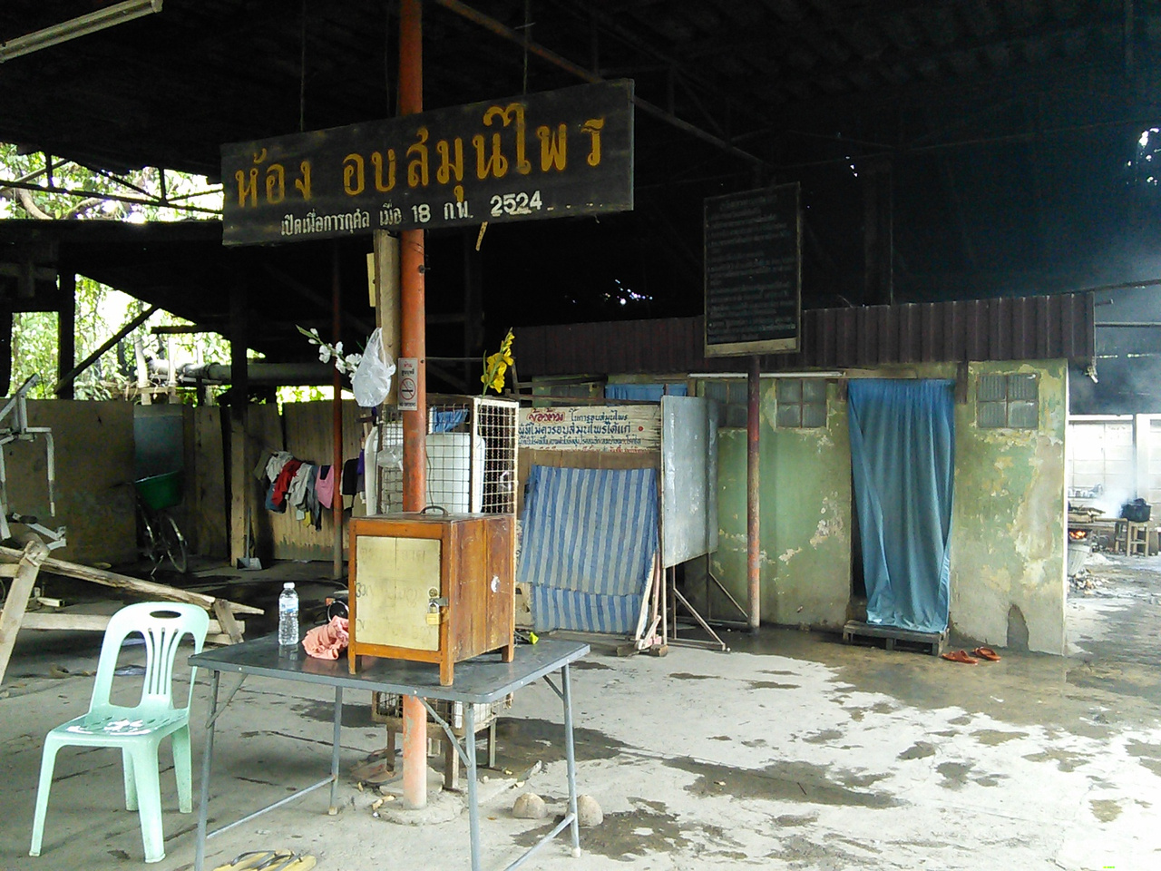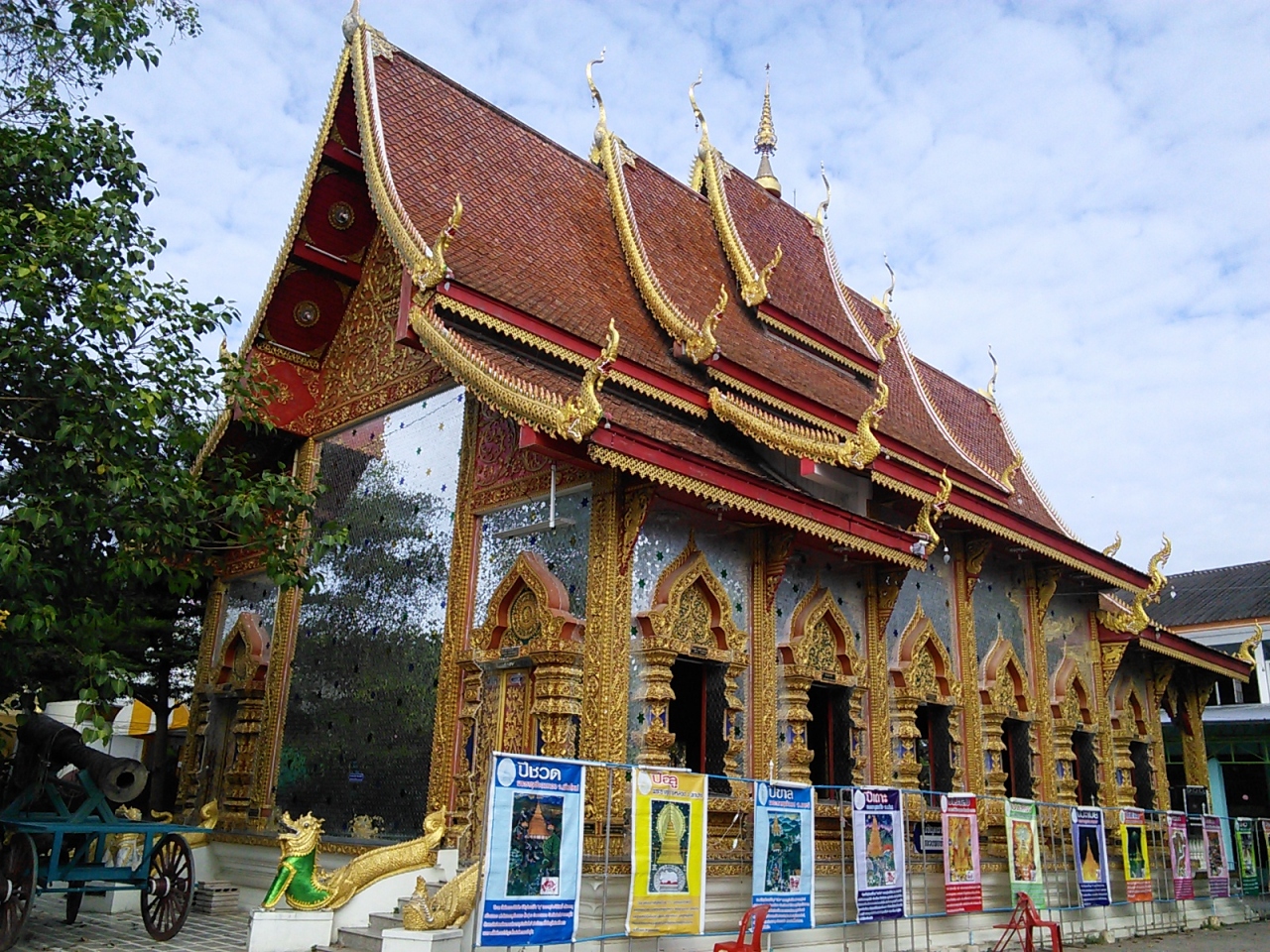 メーソートで1番大きなお寺のようです。確かに入口にある大きな仏塔は迫力があるし、入口正面にある壁がキラキラの礼拝堂もちょっとおしゃれ。仏像も数多くあり賑やかです。しかし私のイチオシは境内右手奥にある薬草サウナ。薪を燃やす煙が漂っていたら営業中です。もちろん誰でも利用可能、20B。19:00頃までやっています。
