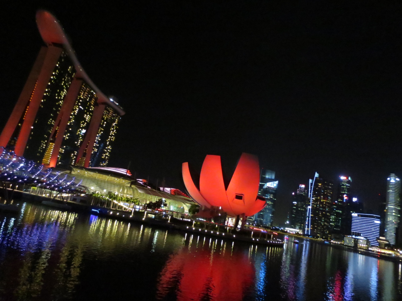 いろんな角度から見てみて、お気に入りのスポットを見つけてみられてはいかがでしょうか。クリスマス前ですので、たくさんの人がいましたので、橋の上に行ってみました。やっぱり赤とか紫でのライトアップがきれいなと感動しました。