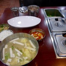プゴグ以外にも自由に食べてもいいキムチやニラがあり、ご飯もつきます。