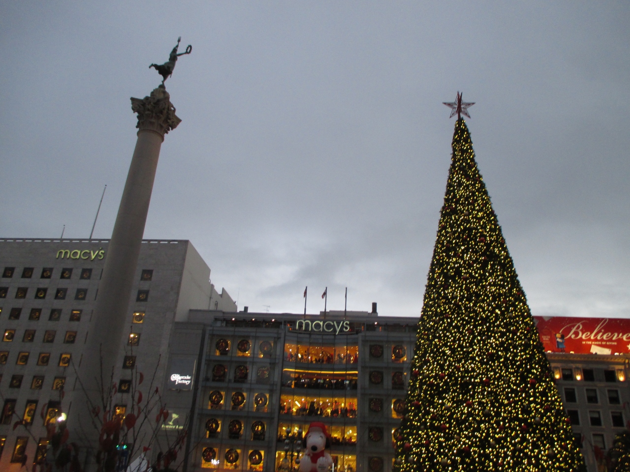 アメリカのデパートで、いい商品が売られています。7階建ての方にはチーズケーキファクトリーがあります。別館は少し離れていて、男性用のお店。クリスマスイヴに行きましたが、ほとんどの商品がセールになっていませんでした。建物の中から見るユニオンスクエアはきれいでした。日が沈んでから行きたかったです。