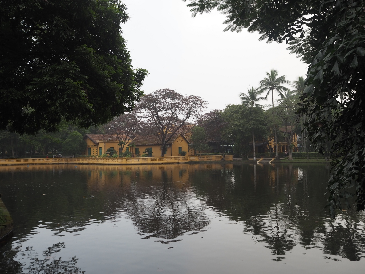大教会近くのホテルからタンロン王城遺跡を経由して行ったので、到着が14時頃。入口で入場券を買ったら2万5千ドンから4万ドンに値上がりされたばかりだった。どうやら12月1日から上がったらしい。公園のような敷地はほとんど人がおらず、ホーチミンの家には数名がいた程度。ゆっくりと中を見ることができた。とてもシンプルな部屋で、センスの良さが感じられた。その後目の前の池を一周して帰る形になるが、その池からの景色がなんとも良かった。どの角度から見ても別の良さがあり、いろいろなところから写真を撮っている人が多かった。あまり期待せずになんとなく立ち寄った場所だったが、これは行って正解だった。