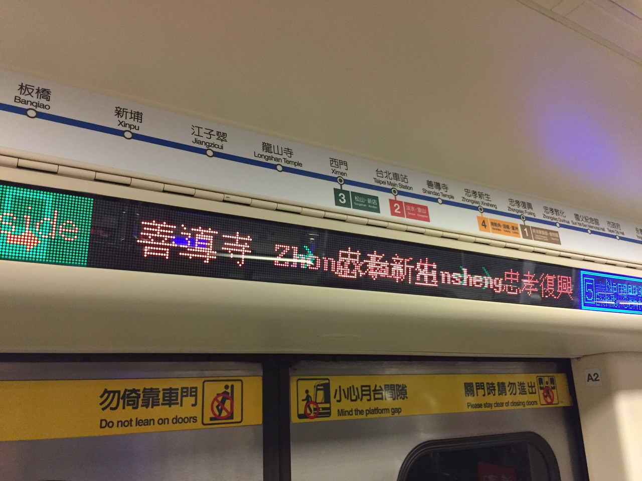 台北旅行の際は最もお世話になる交通手段です。空港から市街のアクセスはもちろん、夜市へ行くのも、温泉地北投に行くのも、動物園に行くのも全て地下鉄でオッケーです。日本人として唯一注意しなければならない点は車内での飲食が厳禁ということ。それさえ気を付ければオールオッケーです。