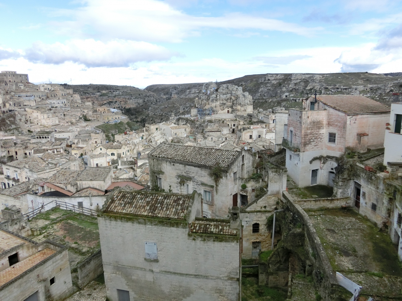 グラヴィーナ川を挟んで丘の斜面の岩に洞窟を掘って住居にしています。