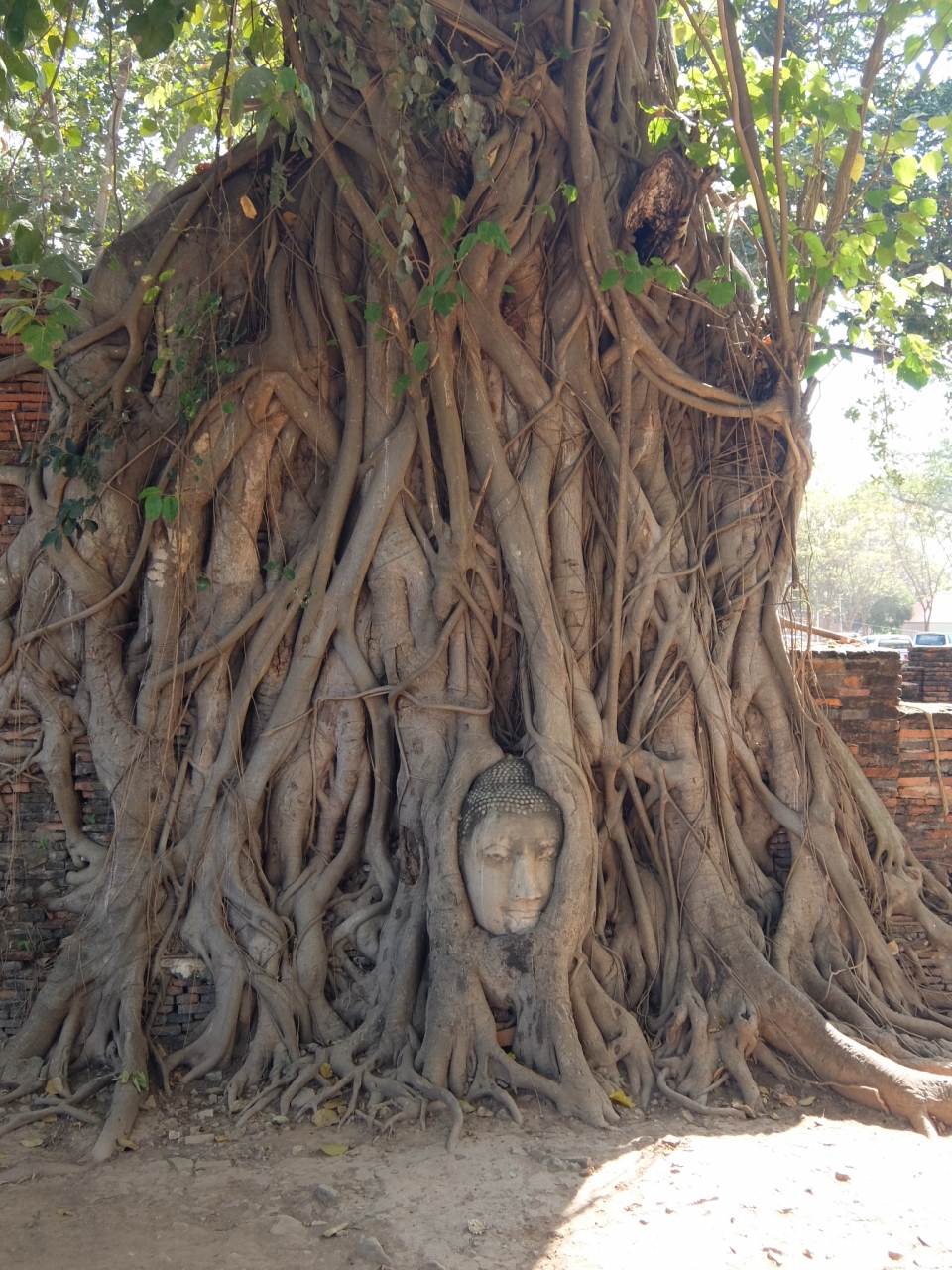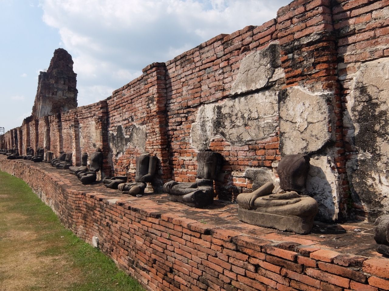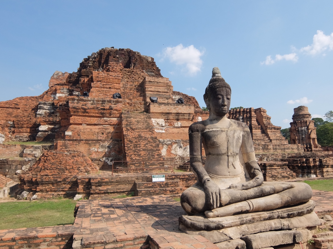 菩提樹の木に覆われる仏頭が有名ですが,その周辺にはビルマ軍の侵攻により破壊された仏像や仏塔があり,激動の時代があったことを感じることができます。
