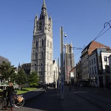 1300年に鐘楼が建てられました。本来の目的は、非常時に軍隊の招集をするためだったそうです。ゲント市民の自治のシンボルとして、市民の生活を見守ってきました。東側には、豪華なゴシック様式の、繊維ホールがありました。