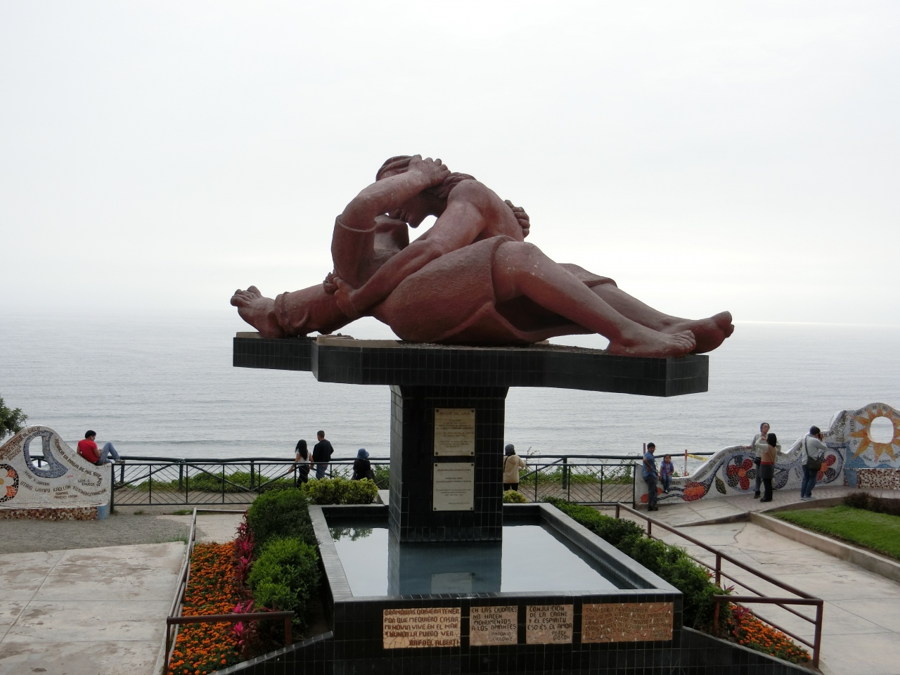 公園内に入ってまず目に留まるのが、抱き合った恋人の大きなモニュメント。南米の恋愛スタイルのストレートさを感じながらも、太平洋を眺めながらのんびりできる公園です。