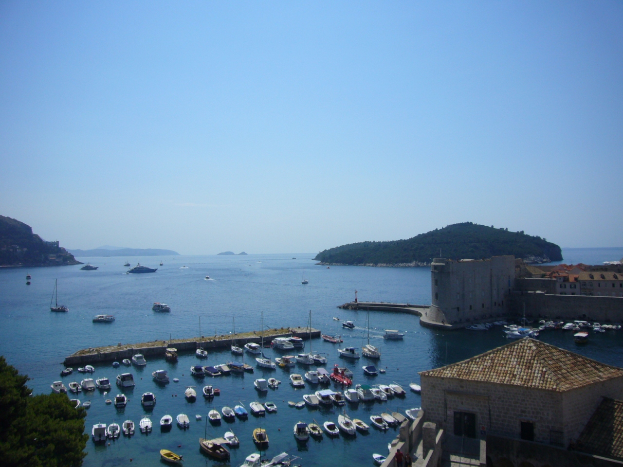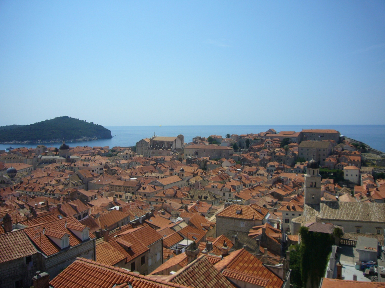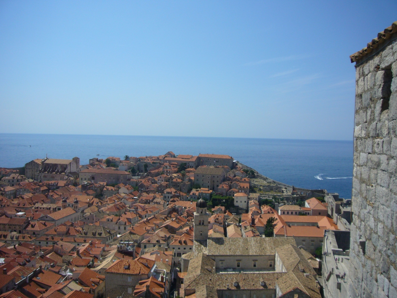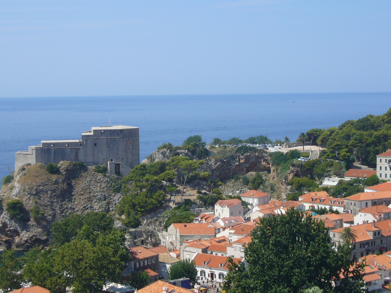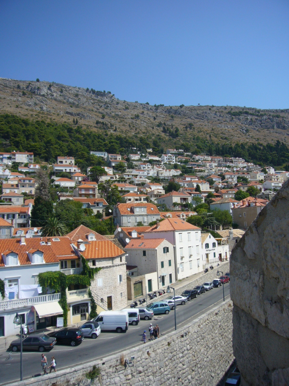城壁は100knで、ツアー代に含まれていました。城壁の入口は3箇所しかなく、一方通行です。?ピレ門、?聖イヴァン要塞辺り、?プロチェ門辺りが入口です。?〜?は海側、?〜?は山側を歩くことになります。我々は?から入りました。上り始めてすぐに旧港が一望できます。すぐに青い空と海、オレンジの屋根が眺められ、そのコントラストが最高です!