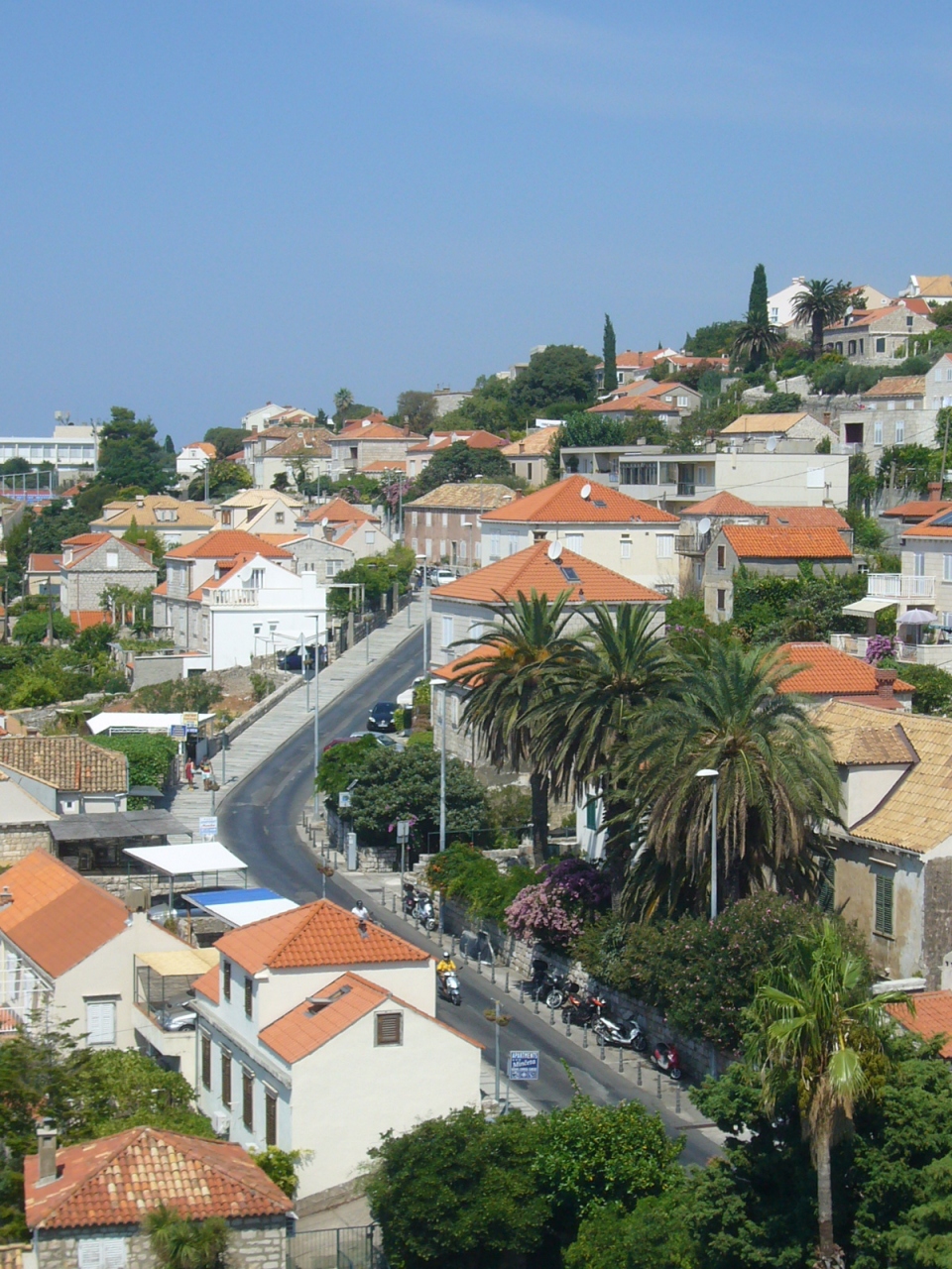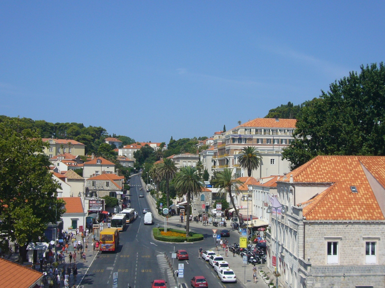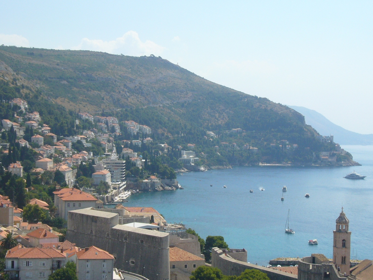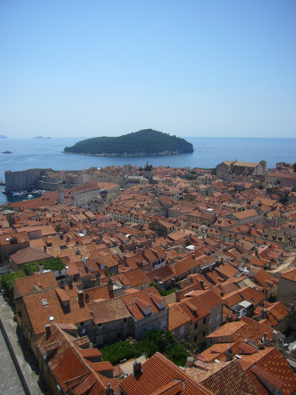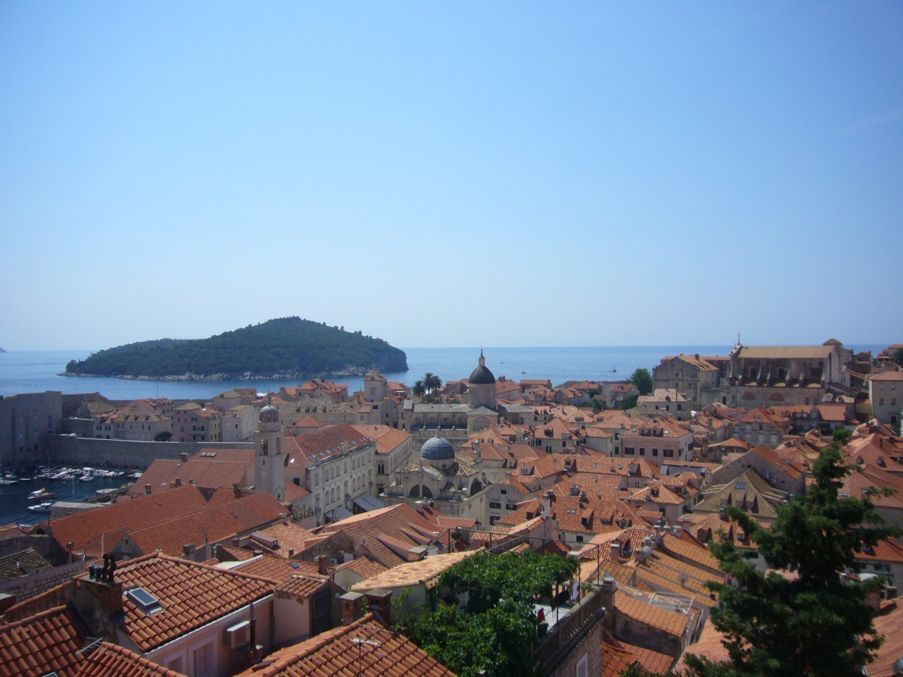 城壁は100knで、ツアー代に含まれていました。城壁の入口は3箇所しかなく、一方通行です。?ピレ門、?聖イヴァン要塞辺り、?プロチェ門辺りが入口です。?〜?は海側、?〜?は山側を歩くことになります。我々は?から入りました。上り始めてすぐに旧港が一望できます。すぐに青い空と海、オレンジの屋根が眺められ、そのコントラストが最高です!