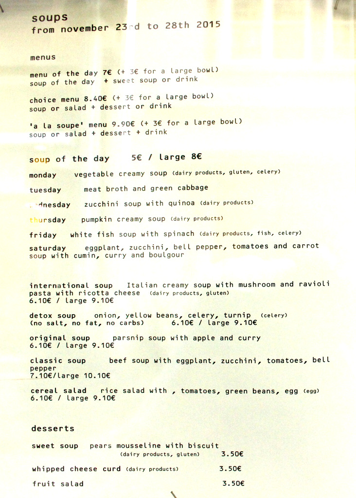 美味しい手作りスープスタンドの日替わりスープは5ユーロ~