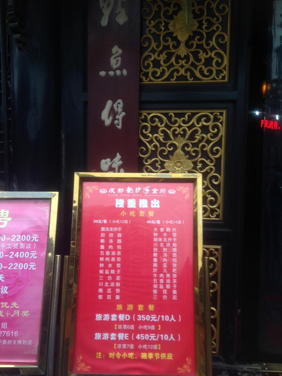 成都名物をすこしずつ出してくれる小吃セットがある。他の店ではあまりこういう出し方はしないので効率よくいろいろ味わいたいときにはとてもおすすめ。値段も品数によってまちまちなので人数や食べられる量に合わせてオーダーできる。出てくるのもはやい。