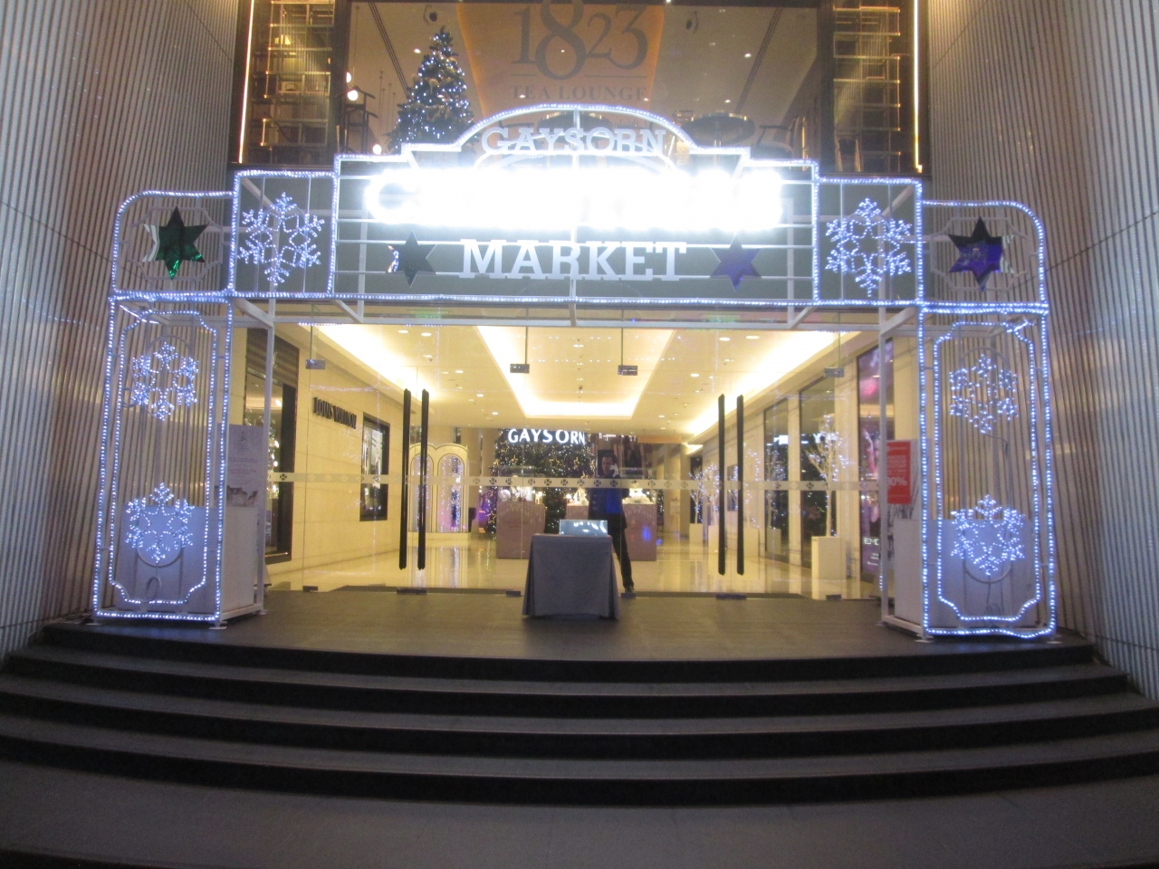 クリスマスシーズンにゲイソーンに訪問しました。1カ月前にも訪問しましたが、11月よりさらにクリスマスモードになっていました。エントランスにはクリスマスのディスプレイが飾られ、イルミネーションがきれいで素敵でした。バンコクではクリスマスが過ぎてもしばらくイルミネーションが続くので年末、年始にチットロム駅に訪問することがあれば、下車して見学してみて下さい。