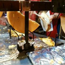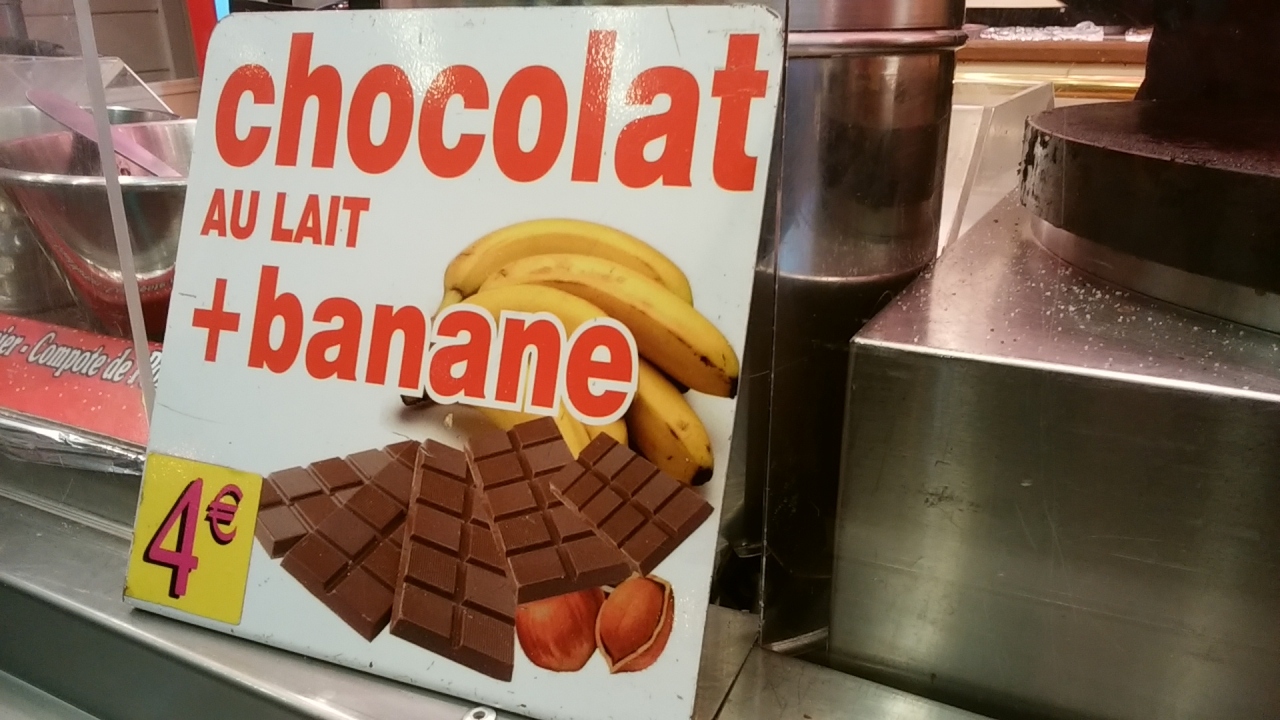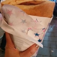 チョコバナナクレープ4ユーロとラクレットサンドを食べながらホットワインを飲みました。